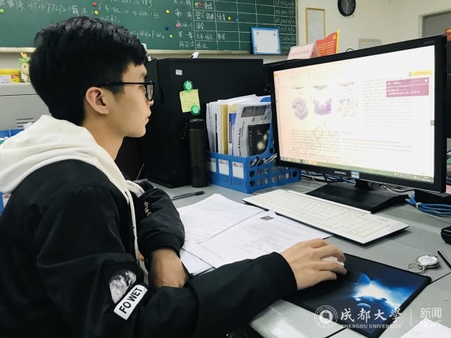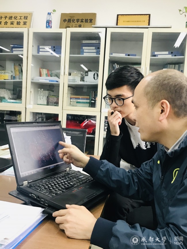 扎实的技术是完成课题的首要前提。段怀川的指导教师是药学与生物工程学院的胡建平教授。在胡老师的悉心指导下,段怀川学习了多种分子模拟技术,如3D-QSAR、分子动力学模拟、分子对接、高斯网络模型、药效团分析和贝叶斯分类等。如今谈起这些模拟技术,段怀川如数家珍。“每一次胡老师讲解技术都很细心。他会认真检查讲解用的每一页PPT是否合理,每一个字是否看得清楚,每一张图片是否清晰。讲解技术时,在需要特别注意的地方,胡老师还会刻意停下来,询问我们是否能够理解,是否做好了笔记。”段怀川说,“除此之外,在实际应用技术的过程中,学长学姐的帮助是不可缺少的,他们会帮助我解决应用中出错的问题,帮我普及原理性的知识,关心我的课题进展,甚至关心我的生活,帮我出谋划策。”实验数据的获取往往要经过几天甚至几周,在遇到各种困难时段怀川并没有气馁,反而越挫越勇。段怀川说,“有一次,在NDM-1数据库的构建当中,需要在较短时间内对大量的抑制剂分子进行计算处理,凭一己之力几乎无法完成。幸亏胡老师指导及时,同课题组孙歆、严潇、谢涛和吴志祥等学长们也伸出了援助之手,该工作得以圆满完成。”