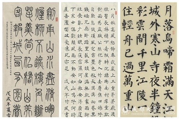 书法教育辅修专业的同学们徜徉在书法天地里,领略到书法的无穷魅力,也收获了累累硕果。2017年8月,杨涵之、吴建权和向虹帆三位同学在四川省第八届大学生艺术节书法比赛中获得一等奖。2018年6月,书法辅修专业及市书法教育基地成果展在凯发k8官网举行,活动展出师生及专家书法作品约一百多幅,学生的书法作品得到专家们的一致好评。2019年4月,书法教育辅修专业2015级的20余位同学参加了全国研究生招生考试,最终有9位同学顺利通过复试被录取。其中,法学专业的吴建权考上北京师范大学书法学术硕士,食品科学与工程专业的向虹帆考上首都师范大学书法专业硕士,黄云辉、廖均、张超都考上了凯发k8官网书法专业硕士。