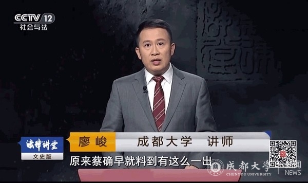 “今天,我们讲一件关于北宋的杀人案件”。2018年12月4日22:34分,我校教师廖峻在中央电视台社会与法制频道(CCTV-12)《法律讲堂》(文史版)栏目上闪亮登场,他主讲的《北宋相州三劫盗案》在央视连续三天播出。