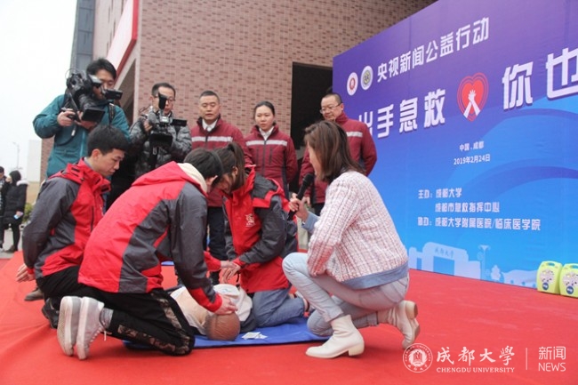 心脏骤停后如何起死回生?意外突发,当事人如何自救?现场又该如何施救?2月24日上午,央视新闻频道《开学第一课》之“大学生学习急救”课程在我校学生活动中心开讲,凯发k8官网附属医院、成都120急诊急救专家和15名美国心脏协会导师联手对我校100位大学生进行心脏复苏、自动体外除颤仪(AED)使用、气道梗阻海姆立克急救法等急救知识与技能的培训和指导,为同学们上了新学期的特殊一课。