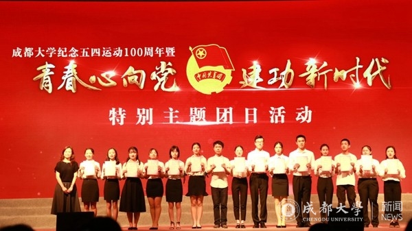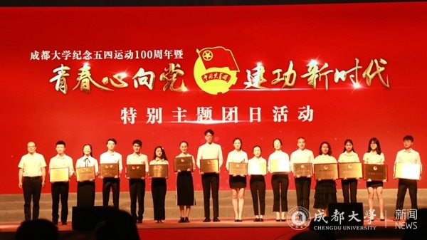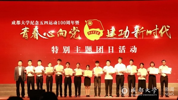 主题团日活动在成大优秀学子深情演绎的《我和我的祖国》主题短片中拉开帷幕。2018-2019年度“五四”十佳共青团员、十佳共青团干部、十佳青年志愿者、星级社团、五四红旗团委、五四红旗团支部、青年志愿者集体代表,以及获得2018年国家级、省级重要荣誉的青年先进集体和优秀个人代表相继上台接受表彰。